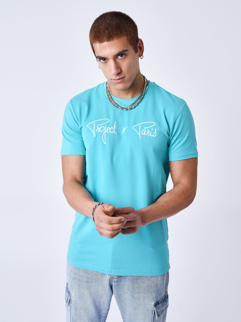 tee-shirt-basic-broderie-logo-project-x-paris-turquoise