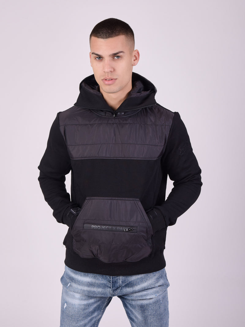 - Nylon panel, quilting on the upper part of the sweatshirt