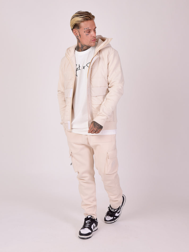 • The model is 180cm tall, weighs 75kg, and wears size L