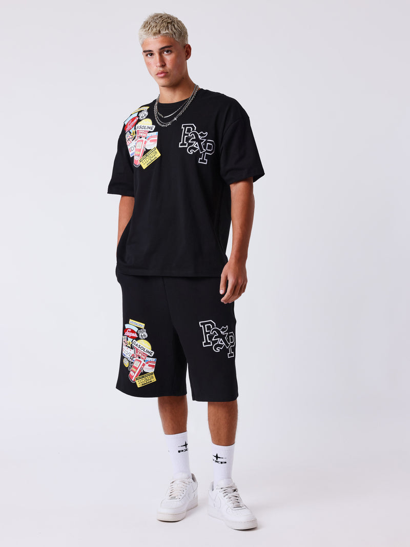 • Estampados gráficos posicionados en las piernas