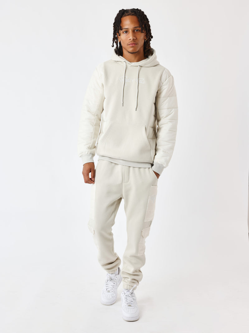 - Het model is 180 cm lang, weegt 75 kg en draagt maat L
