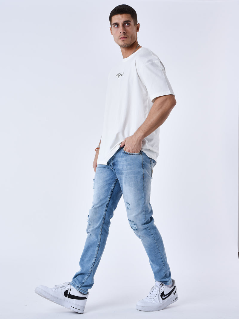 Regular ripped jeans met gaten