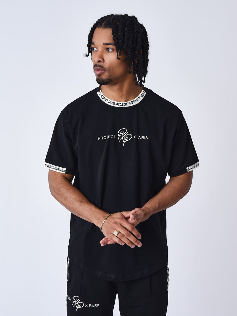 tee-shirt-uni-avec-bande-logo-noir-blanc