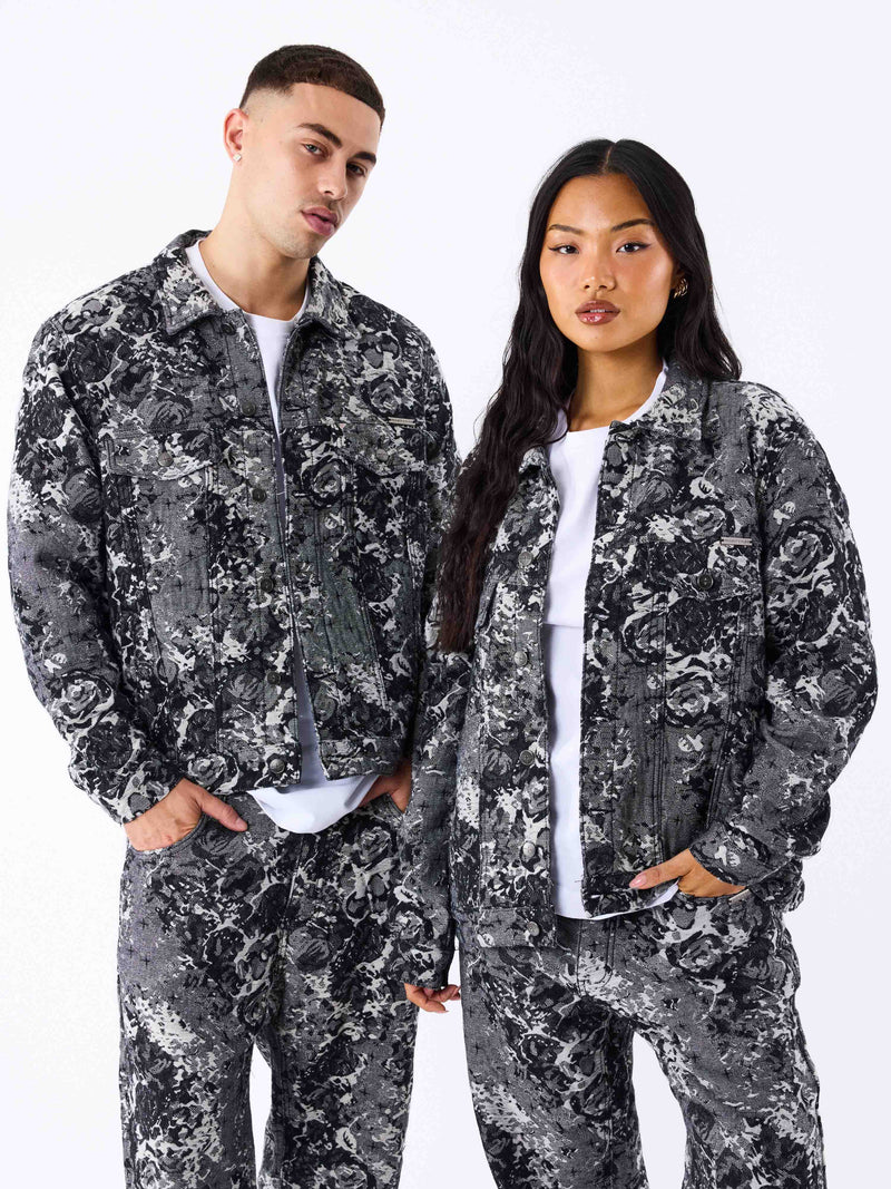 Denim jas met bloemenpatroon