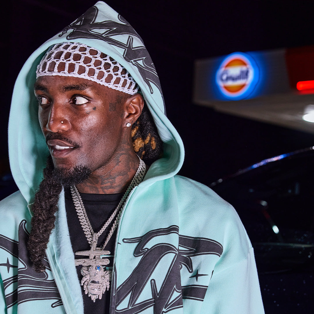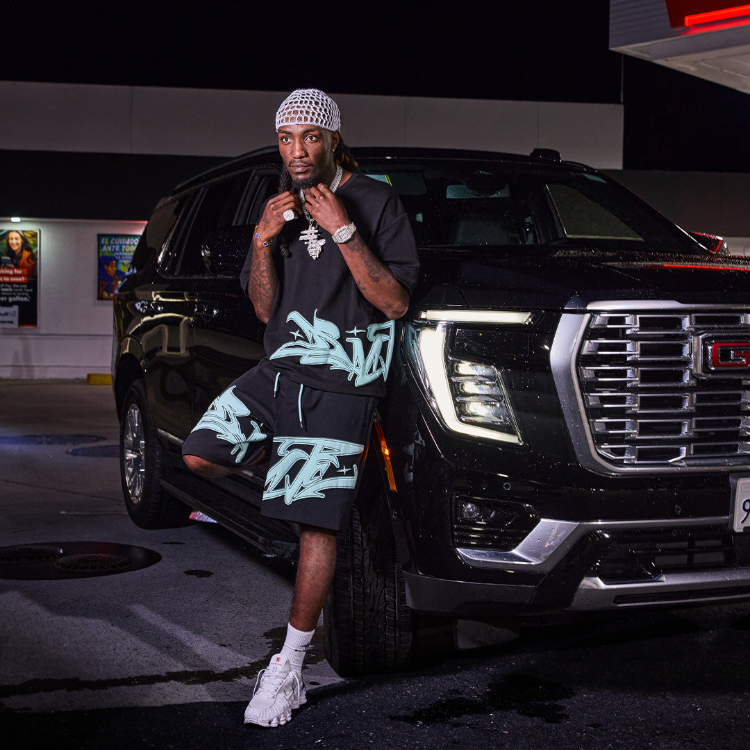 Il portait aussi un outfit de notre capsule exclusive Kalash x PXP, un drop limité qui allie vibe caribéenne, matériaux premium et une vraie identité visuelle.