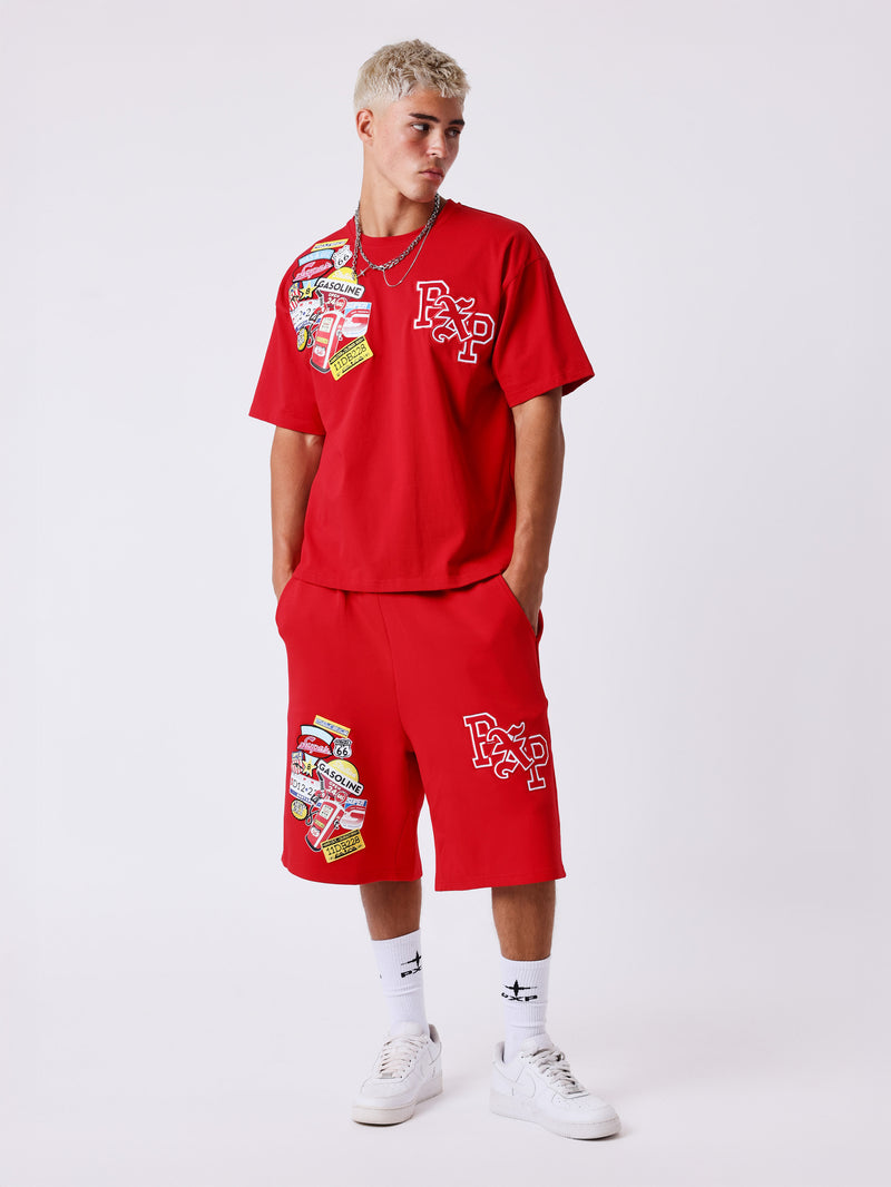 - Estampas gráficas posicionadas nas pernas
